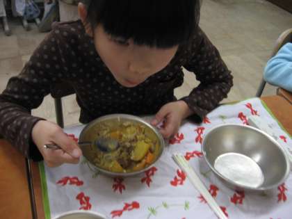 カレーだけでなく,ひじきのソテーもモリモリ!