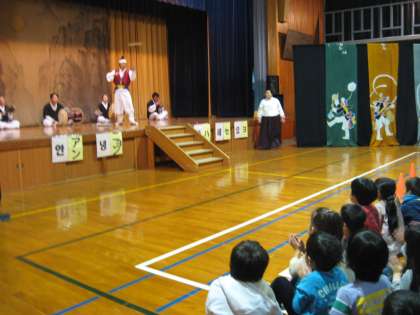韓国・朝鮮の楽器による演奏をバックにして,皿まわしもありました。