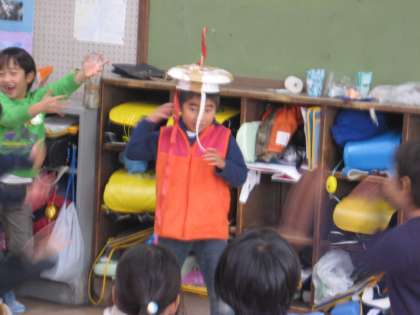 「かぶって回してみて。」 「すばらしい!」