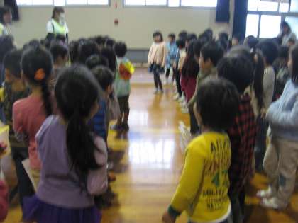 おわりの様子です。1年生から「おわりのことば」を言いました。たくさんの1年生が言いました。