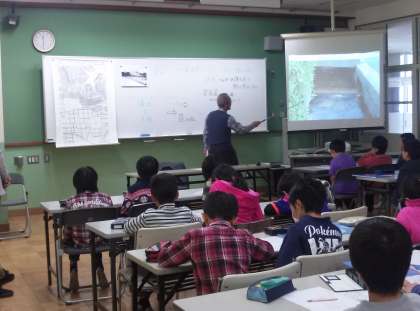 4年生の総合的な学習の時間「松ケ崎 人・水 ふれあいプロジェクト」のゲストティーチャーとして松ケ崎小学校教育学校運営委員会理事長の岩崎 猛彦 さんに来ていただきました。昔の松ケ崎の様子 泉川の様子などたくさんのお話をしていただきました。お忙しい中,本当にありがとうございました。