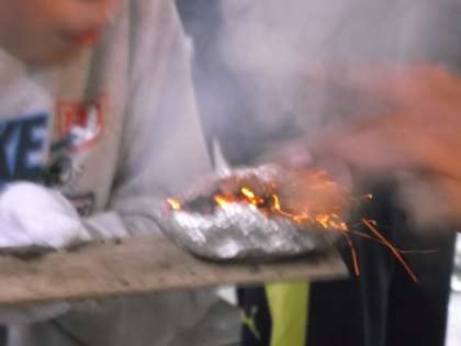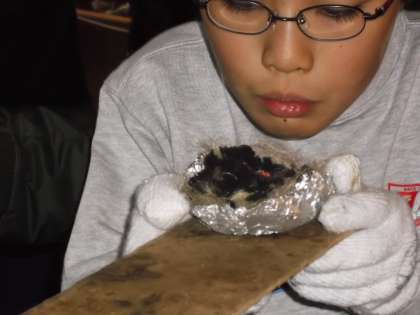 なかなか火を起こすことができなかったので,昔の人の苦労が体験できました。みんな一生懸命取り組ました。手がだるという子や,汗だくになって頑張っている子もいました。火がついいたときはグループで感動していました。