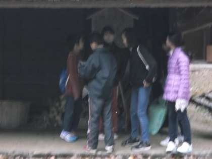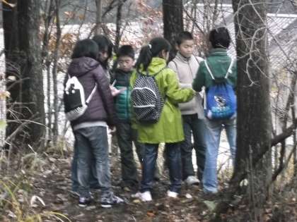 雨がやんでいたので,次の活動「ネイチャービンゴ」をしました。自然の宝探しに出かけようというのがサブタイトルです。朝から雨が降っていたのでビンゴの中に提示されている,ありの行列や鳥の鳴き声は残念ながら見つけるこや聞くことができませんでしたが,グループで楽しく自然の中の宝物を探していました。