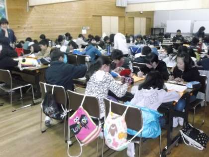 きょう最後の活動です。「はがき新聞」を作りました。2日間で思い出に残ったことを新聞にして,山の家からおうちの方や自分にはがきを送ります。帰るころにはつくと思います。お楽しみに。