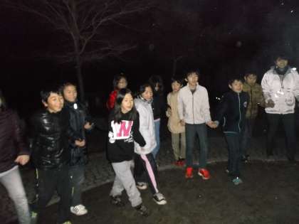 本日最後の活動です。たくさん練習してきた「キャンプファイヤー」です。ゲーム,各クラスの出し物,フォークダンスなどで盛り上がりました。