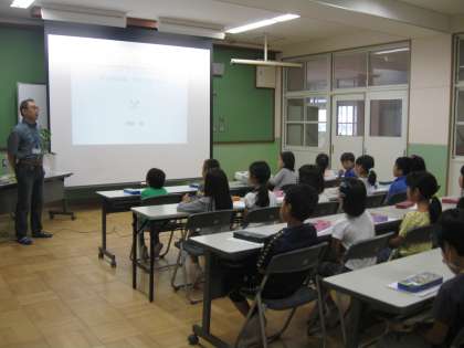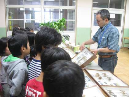 スライドを使ってのお話だけでなく,数々の標本を見ながらの説明などに,子どもたちは夢中になって聞き入っていました。たくさんの質問にも丁寧に答えていただいて,「虫っておもしろい!」「教室で育てているチョウも,もっともっと詳しく調べていきたい。」と,ますます関心が高まったようでした。