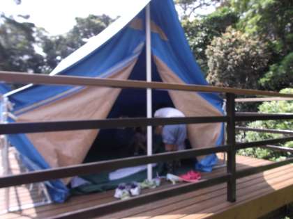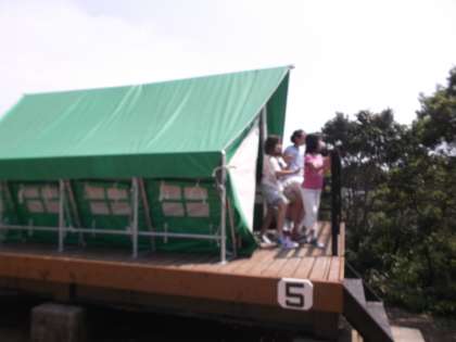 とてもいいお天気になってきたので,女の子がテントで寝ます。男の子は,バンガローです。