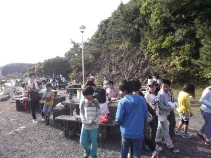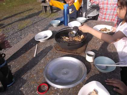 野外炊事の様子は,子どもたちと一緒に活動しているので残念ながらシャッターチャンスを逃しました。どの班もおいしいすき焼き風煮ができました。