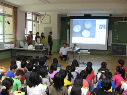 26日(水)3・4校時に,京都工芸繊維大学の森肇教授が研究室の学生さんとともに来校されて,4年生に昆虫の学習の授業をしてくださいました。昨年のカブト虫に加えてモンシロチョウやカイコ,アゲハチョウについても学習できました。
