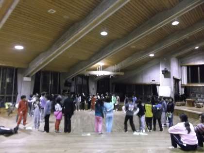 夕食の後,オリエンテーションホールでキャンプファイヤーの歌の練習をしました。