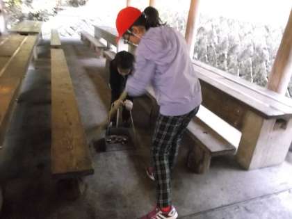 最後まで隅々まで,しっかりと掃除している人たちがいました。最後にお世話になった所員の方にお礼を言いました。