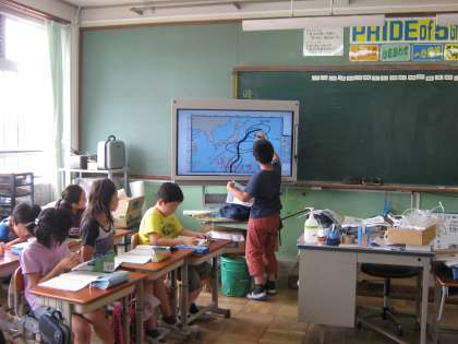 社会科では,とくに電子黒板を積極的に活用していますが,
