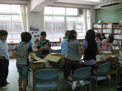 今日は,新しく入ってきた図書を貸し出しできるように,シールをはるなどの準備をしました。