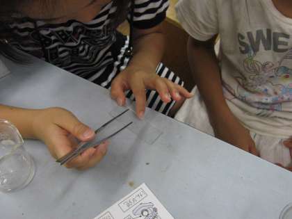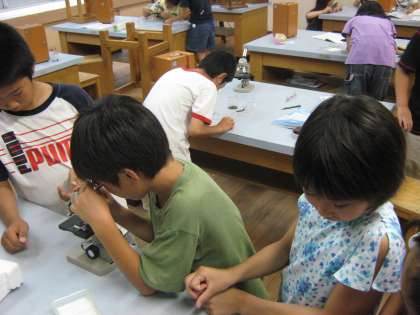 「池や川にすむ魚は,何を食べているのだろう?」ということで,今回は顕微鏡を使って調べました。