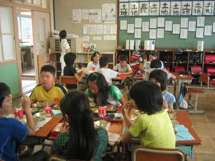 今日は,自由参観日でしたので,ふだんはなかなか見ていただけない給食の時間の様子もご参観いただきました。