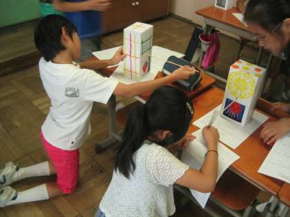 10枚の絵がうまく溝に収まらないというトラブルもありましたが,互いに友達の作品で遊ばせてもらいました。