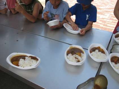 17日(土),梅雨明けした夏空の下,少年補導やPTAの皆さん等のお世話で,飯盒炊さんが行われました。160人を超える子どもたちが参加しました。