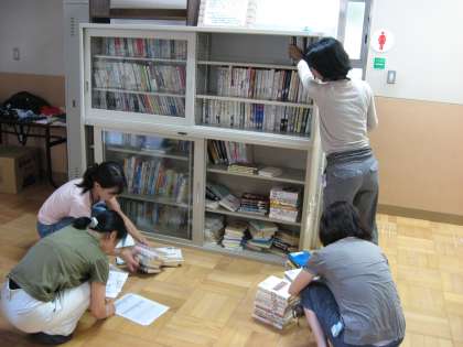 今朝10時から,本館1階奥にある「つれづれ図書」の整理をしていただいています。