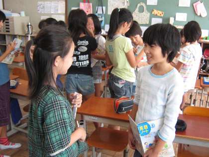 出会う人と好きな漢字の画数を聞き合いながら「How many?」に親しみました。
