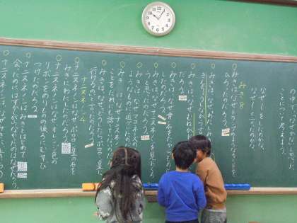 単元「みきのたからもの」を学習していました。物語に出てくる、みきとナニヌネノンがしたことや言ったことの中で、「なぜかな。」と思ったことについて考えました。グループで交流したり、友達の意見を聞いたりして、考えを広めたり、深めたりしていました。