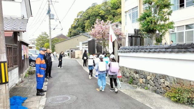 地域の方々にもお越しいただき、子どもたちの登校の様子を見守っていただきました。