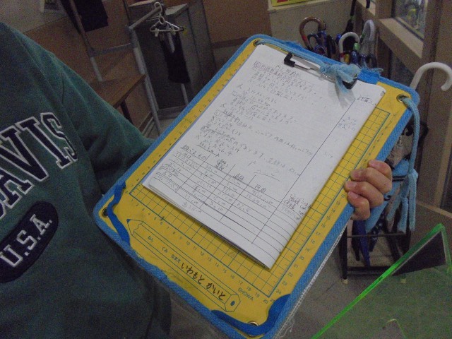 廊下では、5年生がiPadとノートを片手に調べている様子が見られました。何をしているのかと聞くと、算数の学習で円形のものを探し、円周を調べるということでした。トイレットペーパーや消火器などの直径を知らべて、円周を導き出すそうです。