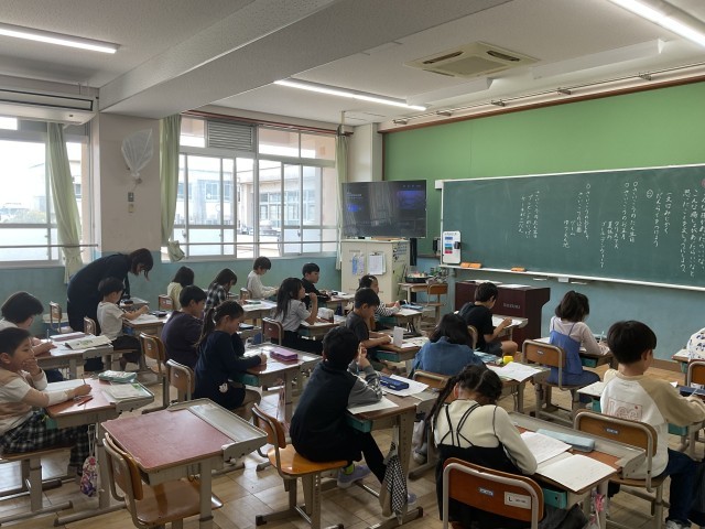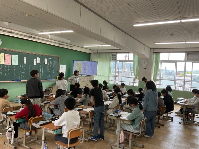 新しい教室で、新しい仲間とともに学校生活が始まりました。アイスブレイクでは笑顔で友達と交流する姿が見られ、教室は温かい雰囲気に包まれていました。新しい教科書を手にした子どもたちは、名前を書いたりページを開いたりしながら、これからの学習を楽しみにしている様子でした。 -
