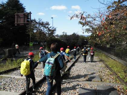 社会科「きょう土をひらく」の学習で,社会科見学に行きました。浜大津から琵琶湖疏水を横に見ながら,小関越えを歩きました。途中で,トンネル工事のときに使われた「たてこう」の跡があり,「思っていたより大きい!」「けっこうたくさんの人とか物とかが運べそう。」と話していました。