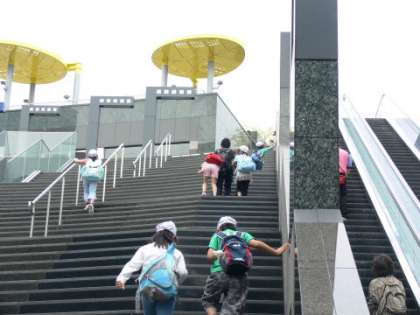 京都駅では,大階段を駆け上がって「大空広場」で,京都の町並みも観察しました。
