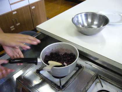家庭科室に集まった5年生の子どもたちは,鍋にクワの果実と砂糖,レモンを入れて,30分間煮込みました。家庭科室は甘いにおいに包まれ,おいしいジャムができあがりました。5年生から他の学年にもおすそ分け,「おいしい!」と好評だったようです。