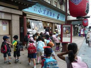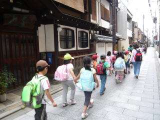 南座前でバスを降り,川端通,宮川通,新道通を通って,午後2時20分に学校に到着しました。1年生は小学校生活初めての社会見学でしたが,最後までよく頑張って活動しました。2年生は1年生の先輩として,同じグループの1年生の世話をしっかりすることができました。1年生も,2年生も,とっても楽しい有意義な社会見学になったことと思います。