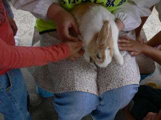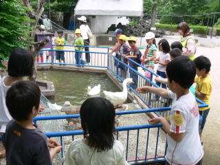 午前10時30分から「おとぎのくに」で,小動物とのふれあいの時間が始まりました。アヒルやガチョウに餌をあげたり,ウサギをだっこしたり…。