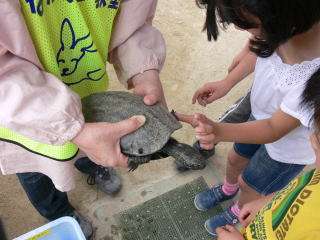 ウサギをこわごわだっこしましたが,だっこされているウサギの方がもっと怖かったのではないかと思います。ヤギに餌をあげたとき,手のひらをペロッとなめられて,その感触に…。亀にも触らせてもらい,大満足でした。