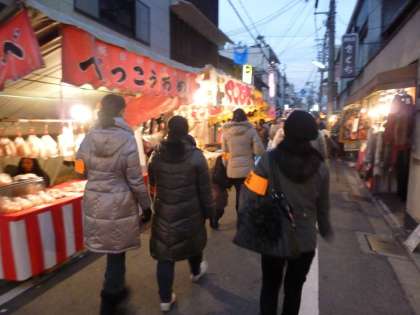 昨日1月11日(火)は学校の北隣,「ゑびす神社」の「残り福」でした。学校の周辺には露店がたくさん建ち並び,深夜まで参拝者が絶えません。この「残り福」にあわせて,PTAが主催し教職員も参加して合同で,「残り福パトロール」を実施しました。この日パトロールに参加したのは,PTAの保護者のみなさん9人,新道小学校の教職員5人の合計14人でした。