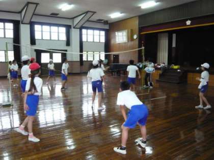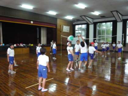 5分間走をがんばった後,ソフトバレーボールを楽しく行いました。