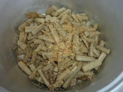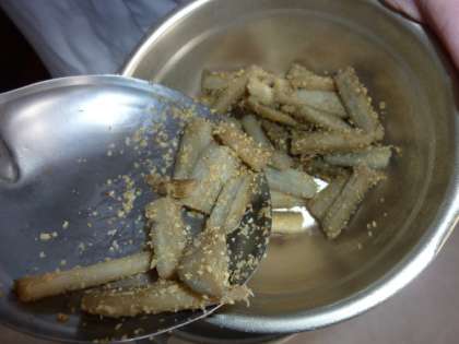 1月20日(木)の「煮しめ」,「ごまめ」,「ぞう煮風みそ汁」,21日(金)の「紅白なます」に続いて,今日1月28日(金)も「おせち料理」の一つ,「たたきごぼう」が献立の中に入っていました。