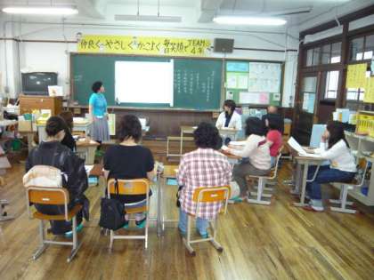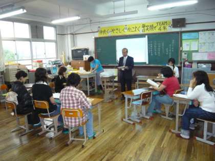 7月9日(木)〜11日(土)の2泊3日,4年生が奥志摩「みさきの家」で活動する野外活動の説明会を,午後3時30分から4年生の教室で実施しました。説明会は学校長のあいさつから始まり,引率教員の紹介,費用,活動内容,服装と持ち物,保健関係の説明を順に行いました。