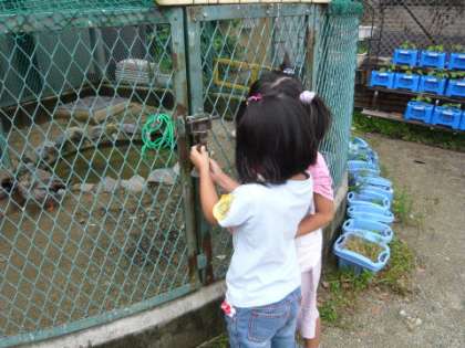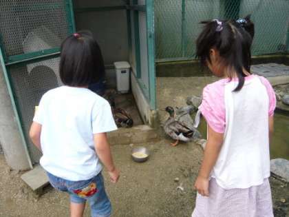 お掃除をして,餌をあげて,小屋に鍵をかけて,これでアイガモの世話は完了です。1年生のみなさん,毎日ご苦労様です。これからも,がんばってね!
