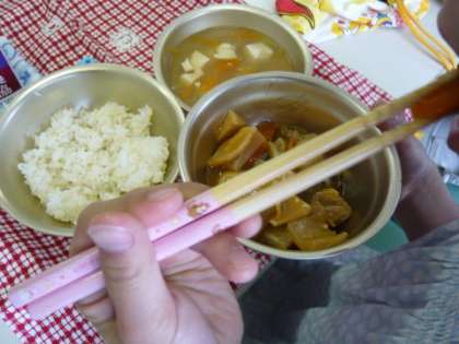 お箸の持ち方は,いかがでしょうか。今日の給食の献立は,「麦ごはん」,「牛乳」,「プリプリ中華いため」,「とうふのスープ」でした。「プリプリ中華いため」は子どもたちに大人気,とってもおいしくいただきました。