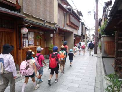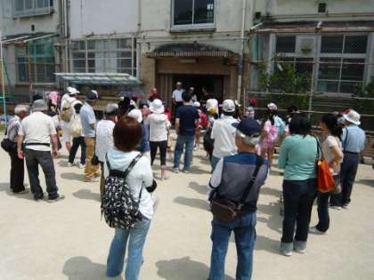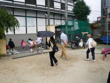 今年の「合同ハイキング」は,7ヶ所のクイズを解きながら「出町柳」まで鴨川の河原を歩きました。午前9時50分に運動場に集合,出発のあいさつの後10時10分に学校を出発しました。