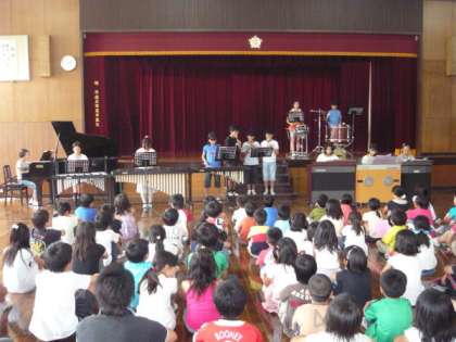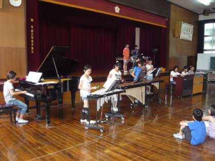 6月の「新道タイム」を,5時間目に実施しました。6月の発表学年は2年生と6年生で,6年生はミュージカル「マイフェアレディ」より「一晩中踊り明かそう」を,ピアノやオルガン,木琴,鉄琴,大太鼓,小太鼓,リコーダーを使って合奏しました。曲の速さが速いことやリズムを上手にとること,曲の中で速さがいろいろ変わることなど,難しいところがたくさんあったようですが,さすがは6年生,迫力満点の立派な演奏を聴かせてくれました。