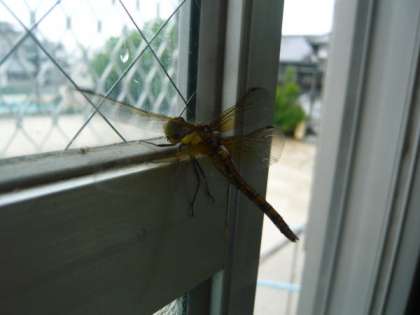 2年生がプールで見つけて教室で飼っていた「ヤゴ」が,「トンボ」に大変身し2年生の子どもたちは大喜び。このトンボは「アキアカネ」らしく,しばらく教室の中にいましたが,開けてあった窓から梅雨空へ飛んで行ってしまいました。