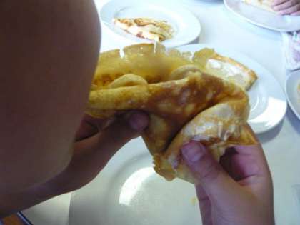 今日は,自由参観日の1日目でした。5年生が5・6時間目に家庭科室で,「クレープ」づくりをしました。