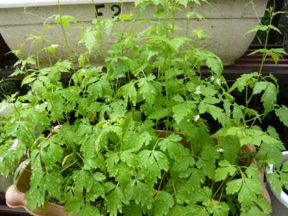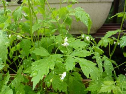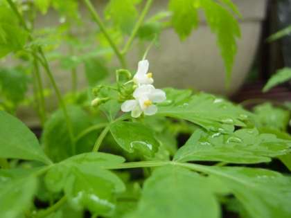 プランターで育てている「ふうせんかずら」に,白い小さな4弁の花が咲きました。この「ふうせんかずら」には,まだ「風船(実)」を見ることはできませんが,まもなくアサカオのように伸びていく蔦と,紙風船の形の果実が目を楽しませてくれるものと思います。