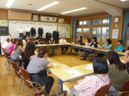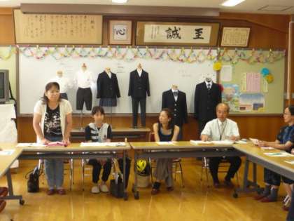 昨日のホームページでお伝えした,平成23年4月に5小学校が統合して新設される「京都市立開睛小学校」の標準服の説明会を,午後1時から「ふれあいサロン」で開催しました。説明会には20人ほどの保護者の方にご参加いただき,「標準服を導入する理由」や「標準服を着用した際の教育的意義や効果」,「標準服の購入方法」などについて説明がありました。保護者の方からは,「ポロシャツの色や購入先は自由か」,「女子のズボンの着用はいいのか」などの質問が出ていました。