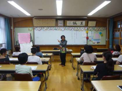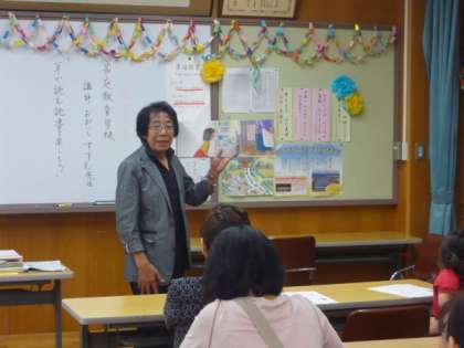 PTA主催の平成21年度第1回目の「家庭教育学級」が,「おおいし すすむ」先生(日本国際児童図書評議会会員)を講師にお迎えして,本校「ふれあいサロン」で午前10時から開催されました。
