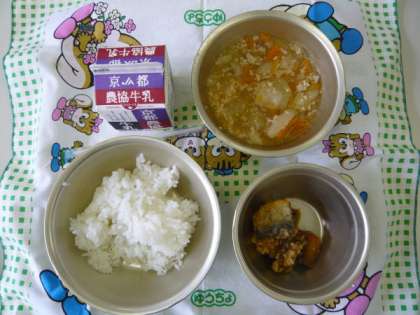 今日の給食の献立は,「ごはん」,「牛乳」,「いわしのかばやき風」,「とうがんのそぼろあんかけ」でした。ちなみに「とうがん」は,7〜8月に収穫される夏野菜で,果実を丸のまま冷暗所に置けば,冬まで保存できるとされることから「冬瓜(とうがん)」と書かれるそうです。また,「とうがん」は,体を冷し、熱をさます効果があるとされています。