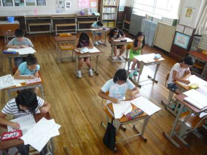 4年生は国語の漢字や算数の計算問題に,がんばって取り組んでいました。1枚のプリントが終わると,担任の先生の所へもって行って丸付けをしてもらい,間違ったところはしっかりと直して,次のプリントに挑戦していました。