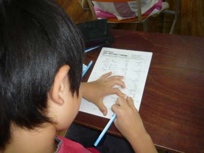 5年生は算数の計算プリントを中心に,復習の学習をしていました。かけ算やわり算の計算を,間違えないように真剣にしっかりと解いていました。