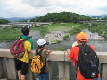 京都大学で昼食を食べた後,出町柳に行って「賀茂川」と「高野川」の合流点を観察しました。最後の目的地は,「下鴨神社」でした。下鴨神社でも建造物や庭園などを見て視経験を増しました。